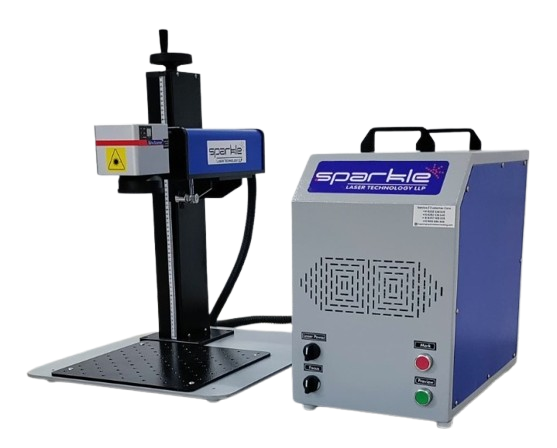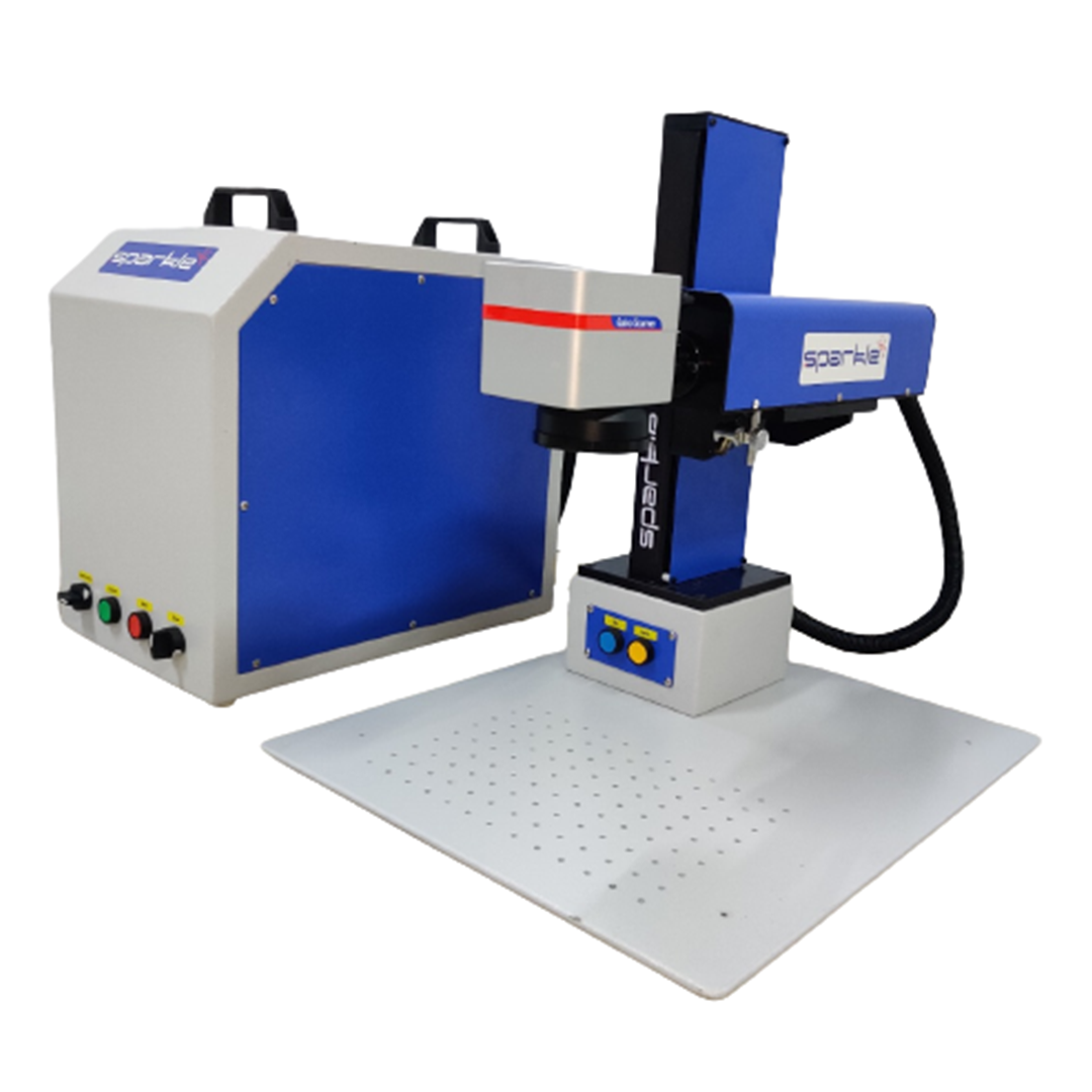 Sparkle Laser offers an optical fiber laser marking machine that is used for stainless steel marking and plastic laser marking. The  Fiber laser Marker Machine makes use of a high-intensity laser beam to mark the surface of a material. Then, the laser beam is projected through a series of mirrors to focus at the specific point on the surface. It causes a localized change in the surface of the material, either by removing material or changing its color which creates the desired mark.